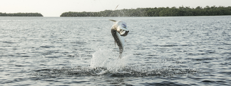 Jumping tarpon on fly in the Everglades